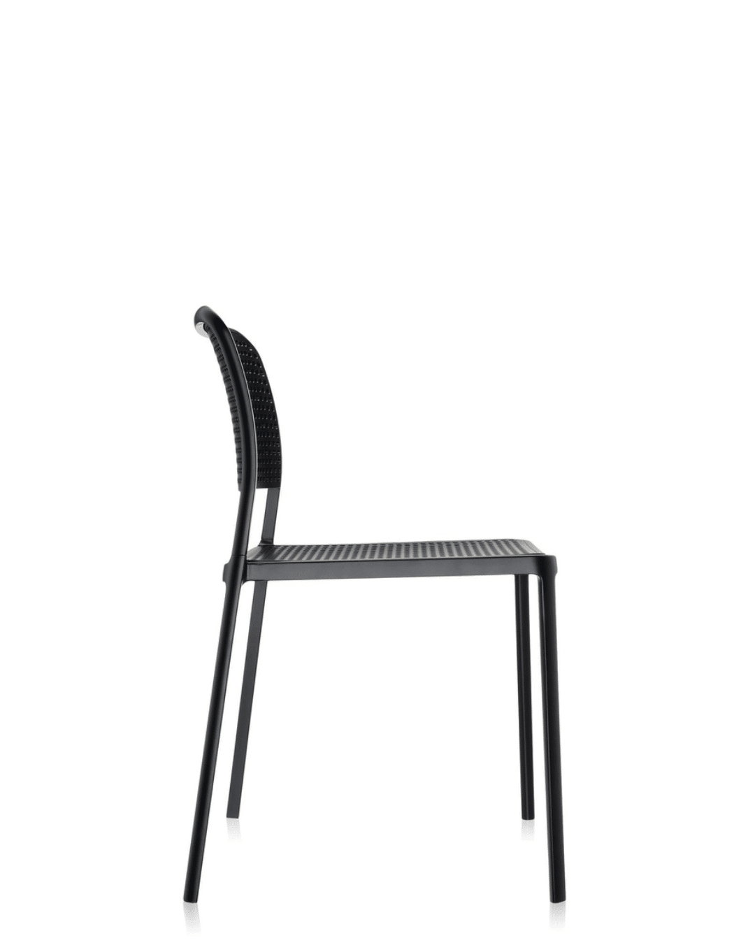 Audrey est une chaise polyvalente et contemporaine qui sait, grâce à sa silhouette simple et éthérée obtenue à l’aide d’un processus spécial de moulage sous pression de seulement deux éléments et sans l’utilisation de soudures, se transformer en un produit multifonctions adapté à toutes les utilisations – intérieur, plein air, maison, bureau, espace public – grâce à une grande richesse de combinaisons de matières rigides et rembourrées. Audrey est disponible à la fois en version chaise et en version fauteuil (avec accoudoirs).